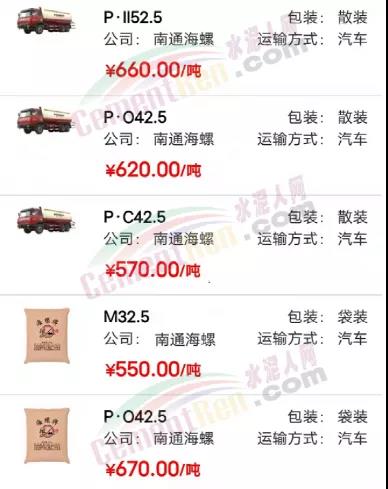 南通海螺9月16日網(wǎng)價顯示PO42.5散裝水泥報價620元/噸,M32.5包裝水泥出廠價550元/噸。
