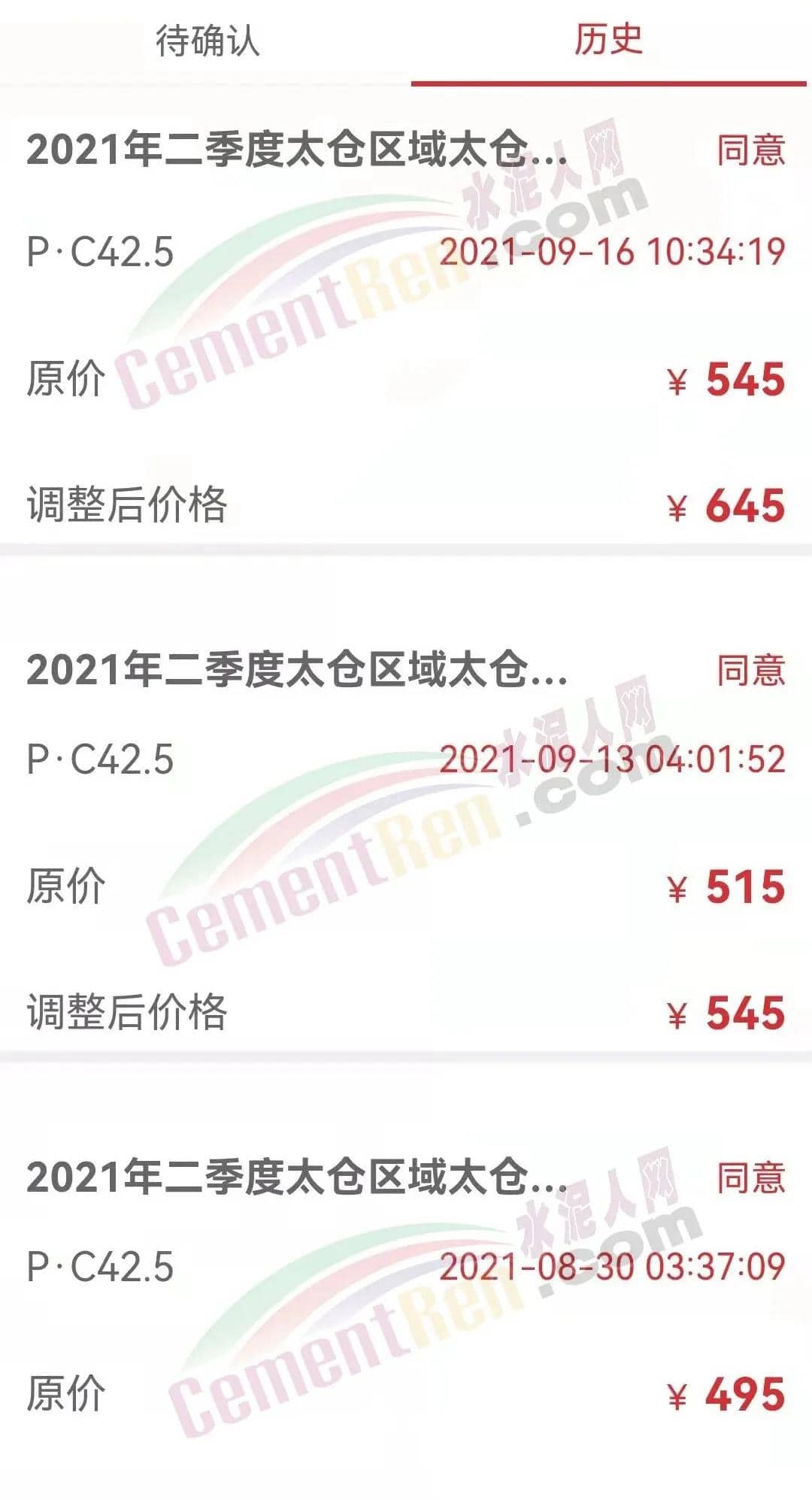 太倉海螺P.C42.5水泥從8月底的495元/噸經(jīng)歷兩次漲價后,已經(jīng)漲至9月16日的報價645元/噸,漲了150元/噸。