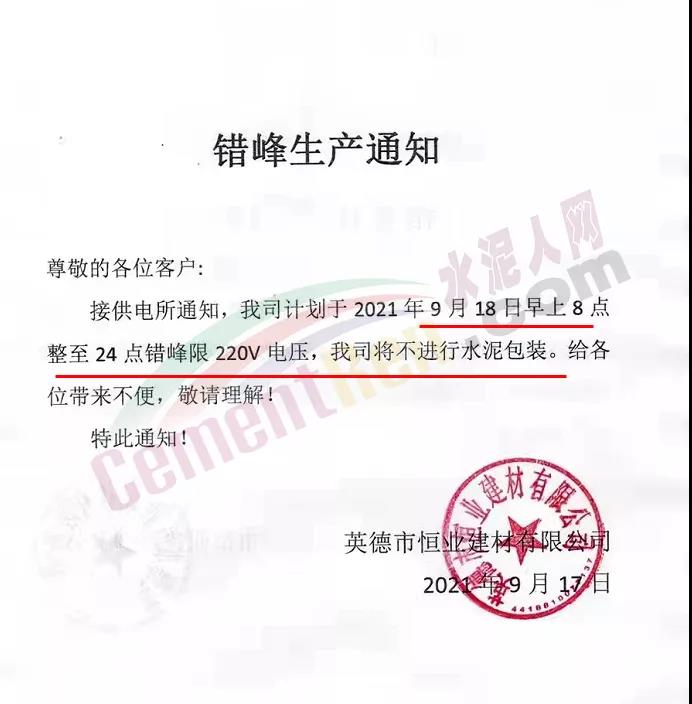 英德市恒業(yè)建材有限公司通知,9月18日早8點(diǎn)至24電錯(cuò)峰限220V電壓,公司將不進(jìn)行水泥包裝。