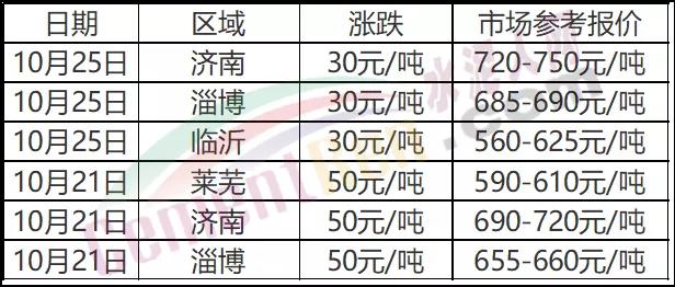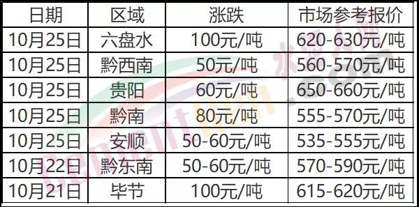 從近期各區(qū)域水泥企業(yè)報(bào)價(jià)可見(jiàn),河南、貴州、山東等多區(qū)域水泥價(jià)格仍處于上漲通道。10月20日~25日貴州省內(nèi)黔西南、黔東南、黔南、安順、貴陽(yáng)水泥價(jià)格上調(diào)50-80元/噸,畢節(jié)、六盤(pán)水水泥價(jià)格上調(diào)100元/噸以上。市場(chǎng)報(bào)價(jià)在500~630元/噸之間。