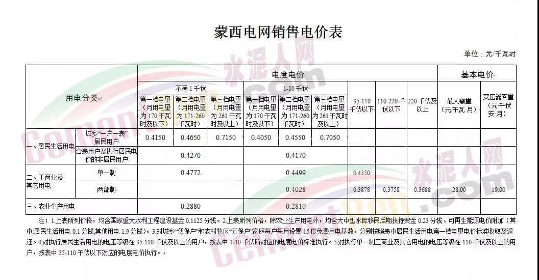 內(nèi)蒙古發(fā)改委提出《關(guān)于明確蒙西地區(qū)電力市場交易用戶保底電價的通知》中的保底電價比原有電價上浮了80%。蒙西的新保底電價如下表所示: