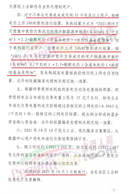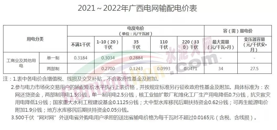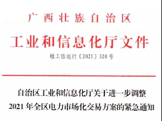 廣西發(fā)布《自治區(qū)工業(yè)和信息化廳關(guān)于進一步調(diào)整2021年全區(qū)電力市場化交易方案的緊急通知》,在緊急通知中,高耗能企業(yè)電價直接上浮50%進行結(jié)算。工商業(yè)及其他用電,執(zhí)行《2021-2022廣西電網(wǎng)輸配電價表》。