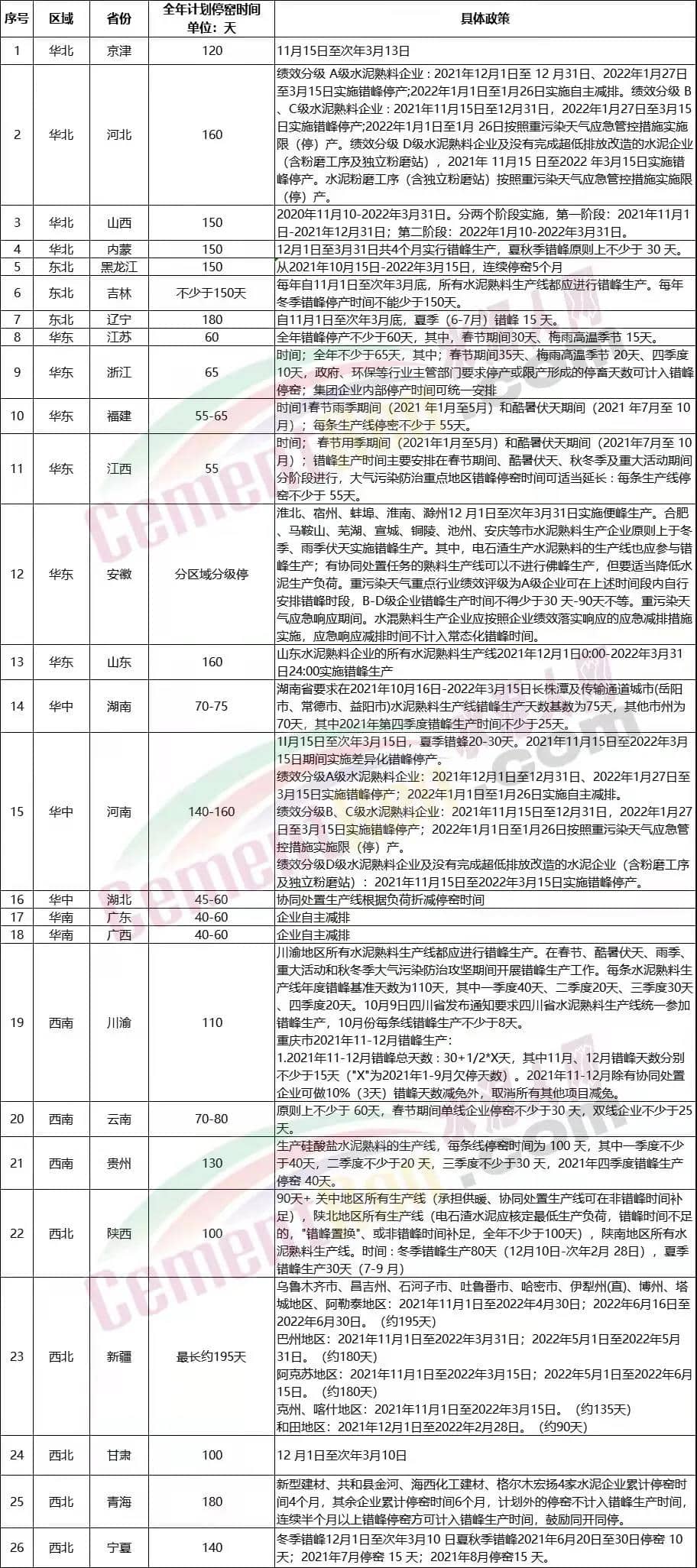 各區(qū)域錯(cuò)峰生產(chǎn)時(shí)間一覽