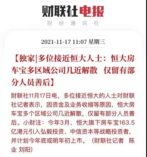 同期,多位接近恒大的人士表示,因資金及業(yè)務(wù)收縮等原因,恒大房車寶多個區(qū)域公司幾近解散,僅留有部分人員善后。