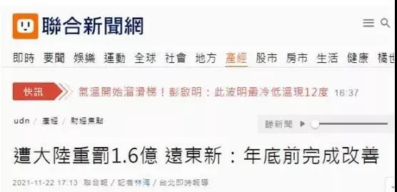 臺灣遠東集團在大陸投資企業(yè)被罰款,當事企業(yè)回應(yīng):將虛心面對,防止類似事情再發(fā)生