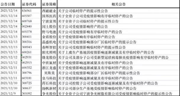 12月13日0-24時(shí),新增確診病例45例,其中杭州市2例、寧波市4例、紹興市38例、境外輸入1例(剛果金輸入),已排查密切接觸者均已實(shí)施集中隔離。浙江全省已累計(jì)納入隔離管控540430人,其中集中隔離52824人,居家健康觀察21835人,日常健康監(jiān)測465771人。近20家A股上市企業(yè)發(fā)布停產(chǎn)公告,且未明確復(fù)產(chǎn)時(shí)間。