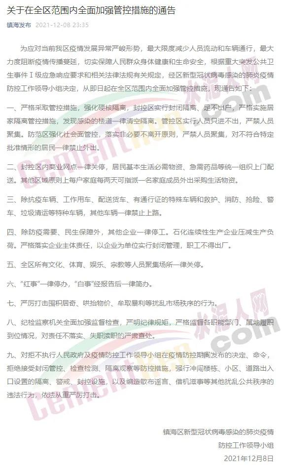 目前,寧波市繼續(xù)維持全市I級響應(yīng)不變,繼續(xù)維持鎮(zhèn)海區(qū)臨時(shí)封閉管理措施不變,浙江省嚴(yán)控跨省出行不變。