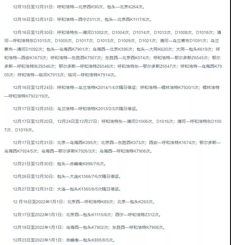 呼和浩特:部分列車臨時(shí)停運(yùn)
