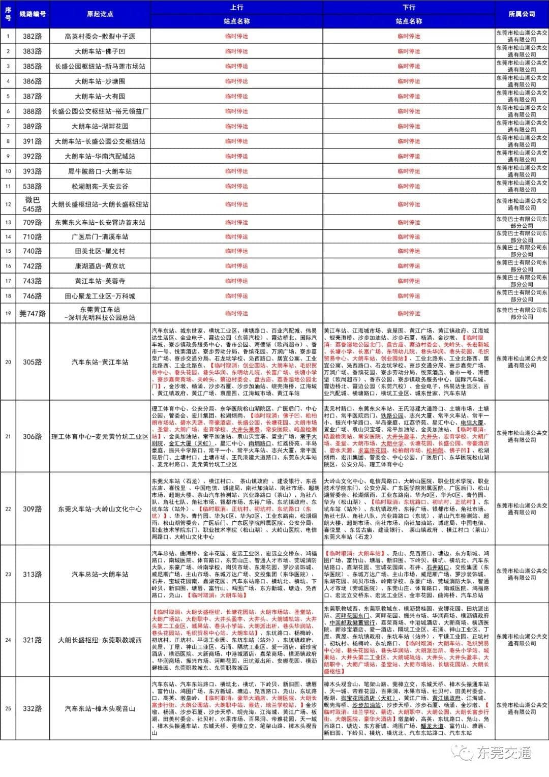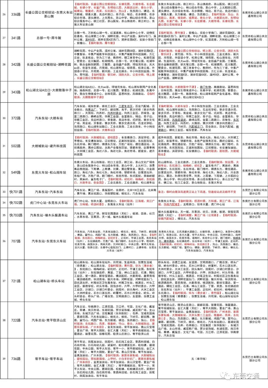 東莞市交通運(yùn)輸局發(fā)布通告稱,為配合全市疫情管控措施,將緊急停運(yùn)19條公交線路,同時(shí)臨時(shí)調(diào)整22條公交線路。