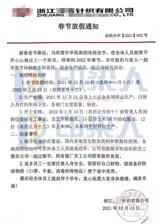 寧波某企業(yè)負(fù)責(zé)人表示,不是工廠不愿意開工,就像現(xiàn)在浙江寧波地區(qū)疫情乍現(xiàn),工廠根本就沒辦法繼續(xù)生產(chǎn),甲方那邊也不可能提供訂單。與其讓大量的工人在工廠里無事可做,倒不如提前給他們放假,也算是讓他們盡快回家團(tuán)聚了。