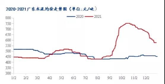 剛剛過去的2021年內廣東區(qū)域P.O42.5包裝水泥曾出現過1000元/噸的市場價格。這與當地市場限電限產,短期內出現的供不應求有關。