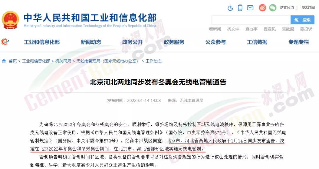 近日,工信部官網(wǎng)發(fā)布“北京河北兩地同步發(fā)布冬奧會(huì)無(wú)線電管制通告”稱為確保北京2022年冬奧會(huì)和冬殘奧會(huì)的安全、順利舉行,維護(hù)場(chǎng)館及特殊控制區(qū)域無(wú)線電波秩序,保障用于賽事業(yè)務(wù)的各類無(wú)線電設(shè)備正常使用,根據(jù)相關(guān)文件要求,經(jīng)商中部戰(zhàn)區(qū)同意,北京市、河北省兩地人民政府于1月14日同步發(fā)布通告,決定在北京2022年冬奧會(huì)和冬殘奧會(huì)期間,在北京市、河北省部分區(qū)域?qū)嵤o(wú)線電管制。管制從2022年2月4日開(kāi)始到3月14日0時(shí)結(jié)束。
