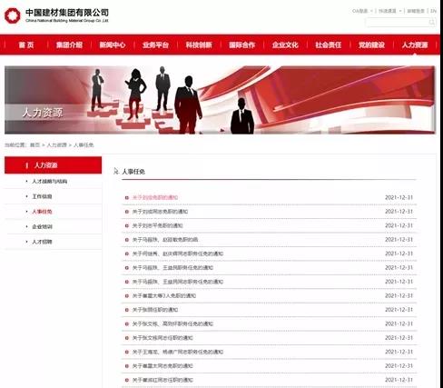 2021年12月29日-31日期間中國建材集團(tuán)官網(wǎng)發(fā)布了20多條高管任免通知。其中包括水泥板塊多位高管的任免。