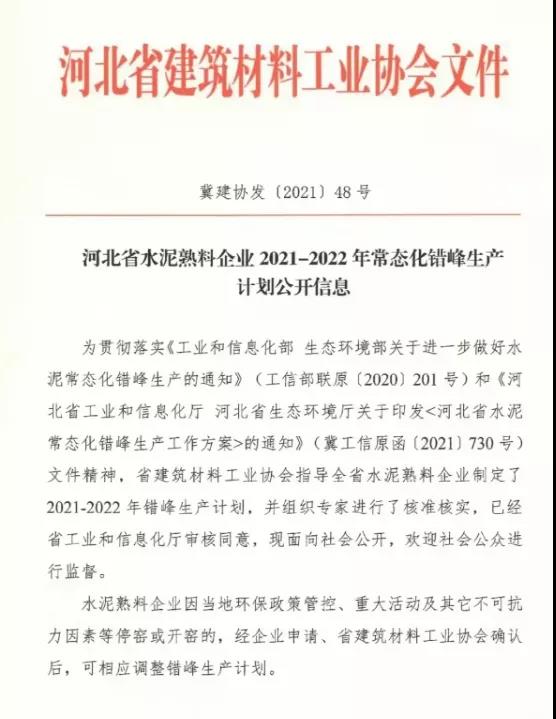 截止2021底共有26個(gè)區(qū)域發(fā)布了常態(tài)化錯(cuò)峰生產(chǎn)計(jì)劃,其中基準(zhǔn)停產(chǎn)天數(shù)最長達(dá)180天。河北金隅鼎鑫水泥有限公司2000t/d生產(chǎn)線2022年非采暖季錯(cuò)峰30天,采暖季錯(cuò)峰260天,合計(jì)停產(chǎn)天數(shù)達(dá)290天,為各區(qū)域停產(chǎn)天數(shù)最長的水泥企業(yè)。