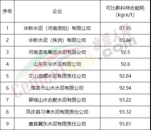 日前工信部發(fā)布《2021年度重點(diǎn)用能行業(yè)能效“領(lǐng)跑者”企業(yè)名單》水泥行業(yè)9家企業(yè)入選,華新水泥(河南信陽)有限公司以可比熟料綜合能耗87.95kgce/t位列第一位。