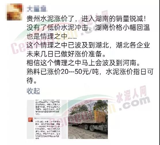 水泥人網(wǎng)通訊員消息,近幾日多區(qū)域水泥企業(yè)發(fā)布調(diào)價(jià)通知,上調(diào)水泥報(bào)價(jià)。有經(jīng)銷商表示,貴州水泥漲價(jià)了,進(jìn)入湖南的銷量銳減!沒有了低價(jià)水泥沖擊,湖南價(jià)格小幅回溫也是情理之中……這個(gè)情理之中已波及到湖北,湖北各企業(yè)未來幾日已做好漲價(jià)準(zhǔn)備。相信這個(gè)情理之中馬上會(huì)波及到河南。熟料已漲價(jià)20-50元/噸,水泥漲價(jià)指日可待。