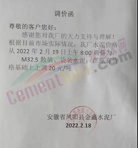 2月17前后,內(nèi)蒙古呼和浩特、烏蘭察布主要品牌通知上調(diào)水泥價(jià)格20-30元/噸。