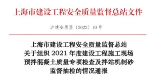 日前,上海市建設(shè)工程安全質(zhì)量監(jiān)督總站發(fā)布《關(guān)于組織2021年度建設(shè)工程施工現(xiàn)場預拌混凝土質(zhì)量專項檢查及拌站機制砂監(jiān)督抽檢的情況通報》稱,為防范工程質(zhì)量事故發(fā)生,加強混凝土質(zhì)量管控,規(guī)范見證取樣行為,針對目前機制砂來源不穩(wěn)定、質(zhì)量控制難度大的情況,上海市建設(shè)工程安全質(zhì)量監(jiān)督總站于2021年3月-12月,在全市范圍內(nèi)開展建設(shè)工程施工現(xiàn)場預拌混凝土質(zhì)量專項檢查及混凝土攪拌站機制砂(人工砂)監(jiān)督抽檢。