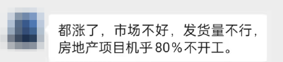 長三角一家中轉(zhuǎn)庫負(fù)責(zé)人對水泥人網(wǎng)表示,“都漲了,市場不好,發(fā)貨量不行,房地產(chǎn)項(xiàng)目幾乎80%不開工。”