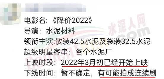 江西贛州海螺水泥經(jīng)銷商發(fā)通知稱,接贛州海螺水泥廠家通知,從2022 年3月3日上午8時(shí)起,公司銷售信豐、南康、贛州區(qū)域袋裝、散裝32.5水泥在原價(jià)格基礎(chǔ)上下調(diào)20元/噸;42.5散、袋裝水泥在原價(jià)格基礎(chǔ)上下調(diào)40元/噸。