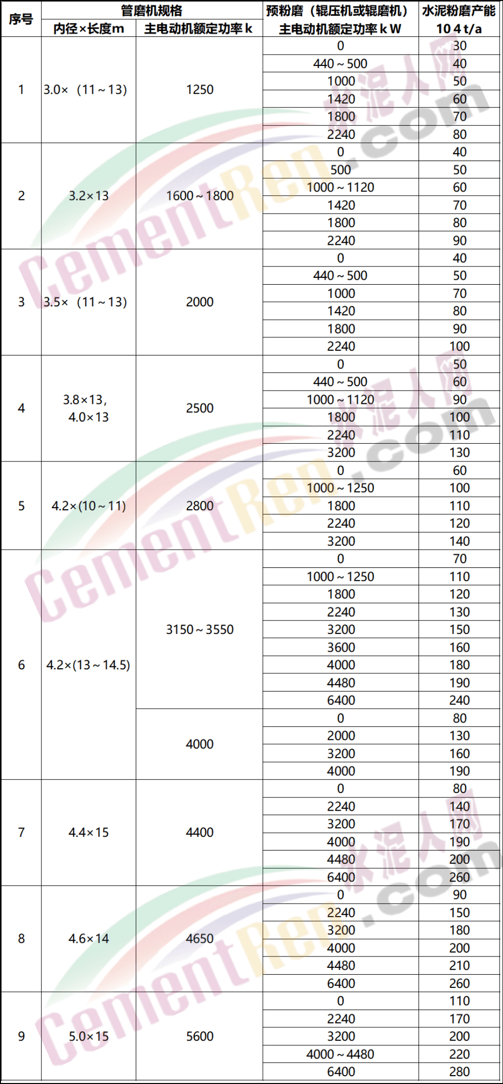 水泥粉磨產(chǎn)能核定表(管磨機系統(tǒng))
