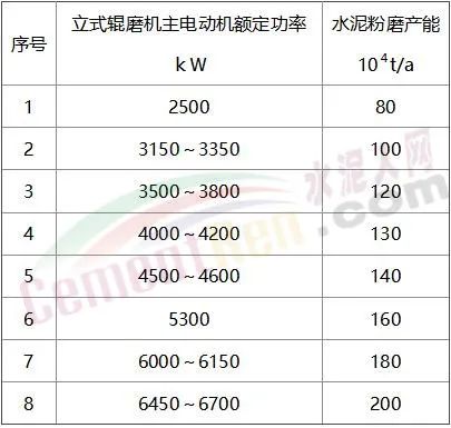 水泥粉磨產(chǎn)能核定表(立式輥磨機系統(tǒng))