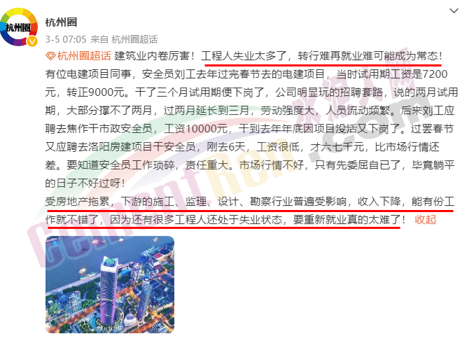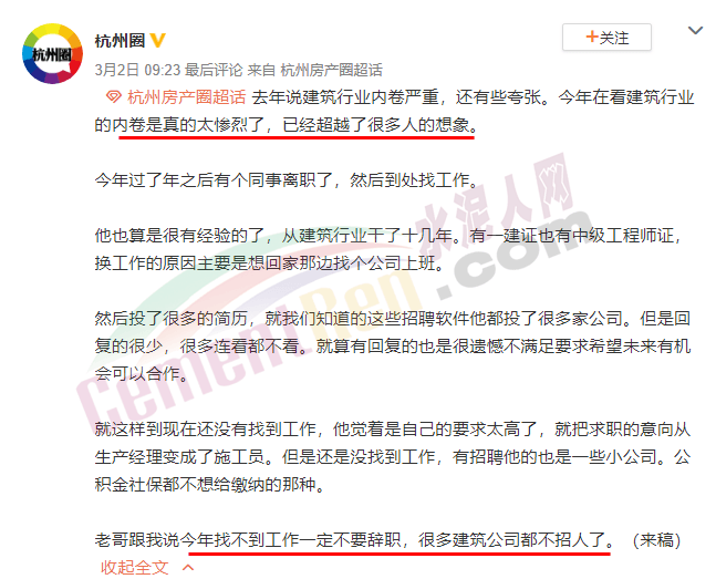 去年說(shuō)建筑行業(yè)內(nèi)卷嚴(yán)重,還有些夸張。今年在看建筑行業(yè)的內(nèi)卷是真的太慘烈了,已經(jīng)超越了很多人的想象。今年過(guò)了年之后有個(gè)同事離職了,然后到處找工作。