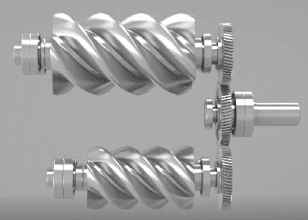 1. 主機(jī)采用高效雙級(jí)壓縮,由主齒輪帶動(dòng)兩個(gè)同步齒輪,驅(qū)動(dòng)兩個(gè)壓縮主機(jī)。均分及降低了壓縮比,減少泄漏量,提高容積效率。