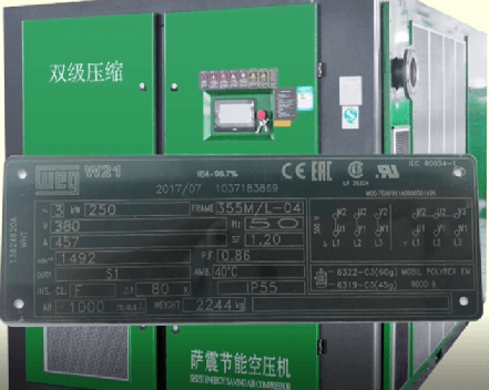 6. 采用進(jìn)口品牌的低壓差納米空濾,玻纖油濾及折疊式油分降低內(nèi)部壓損,提升效率。電機(jī)采用全球三大品牌之一WEG品牌,IE4一級(jí)能效等級(jí),IP55防護(hù)等級(jí)B級(jí)溫升,獨(dú)立風(fēng)冷,確保高效節(jié)能,高可靠。
