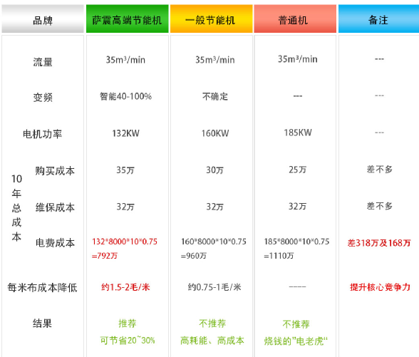 空壓機(jī)使用10年產(chǎn)生的費(fèi)用對(duì)比表