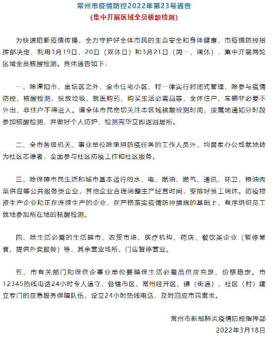 3月18日,銅陵市新冠肺炎疫情防控應(yīng)急綜合指揮部凌晨通報:6時起,銅官區(qū)、義安區(qū)、郊區(qū)實行管控措施:城市小區(qū)實行封閉管理;除批準(zhǔn)的企業(yè)其他一律停工停產(chǎn);除批準(zhǔn)外經(jīng)營場所暫停營業(yè)。