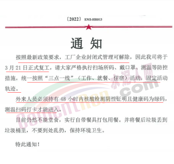 廣東深圳疫情防控指揮部發(fā)布通告稱,3月14日至20日,非城市保障型企業(yè)停止運營或居家辦公,停止一切非必要流動、活動,全市全員進(jìn)行三輪核酸檢測。廣東東莞全面升級防控措施,發(fā)生本土疫情的鎮(zhèn)街(園區(qū)),所有企業(yè)一律停止生產(chǎn)活動;未發(fā)生本土疫情的,實行封閉式管理的產(chǎn)業(yè)園區(qū),在嚴(yán)格落實各項防疫措施的前提下維持基本生產(chǎn)。深莞兩市,除保障城市運行及供港物資貨運的交通外,全市公交、地鐵停運。根據(jù)通告指示,許多倉儲物流企業(yè)暫停運營。深圳市金運達(dá)國際物流表示,自2022年3月14日起,深圳所有倉點暫停辦理進(jìn)出倉業(yè)務(wù);城市國際物流發(fā)布通知稱,東莞集運倉庫自2022年3月16日起,工廠停產(chǎn)停工,在此期間,倉庫暫停收貨、裝箱發(fā)貨。汕頭萬象城通知暫停營業(yè),恢復(fù)營業(yè)時間另行通知。南澳大橋臨時交通管制……