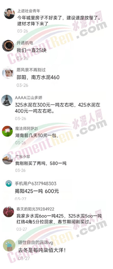 3月17日,長(zhǎng)沙部分主流品牌水泥價(jià)格跌20-40元/噸
