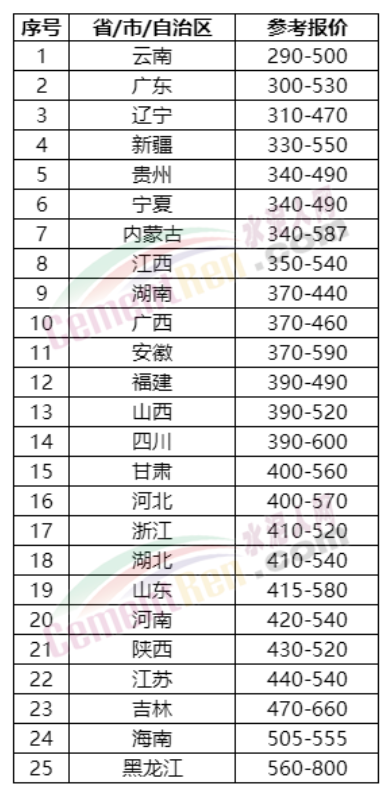近期各區(qū)域P.O42.5散裝水泥參考報(bào)價(jià)