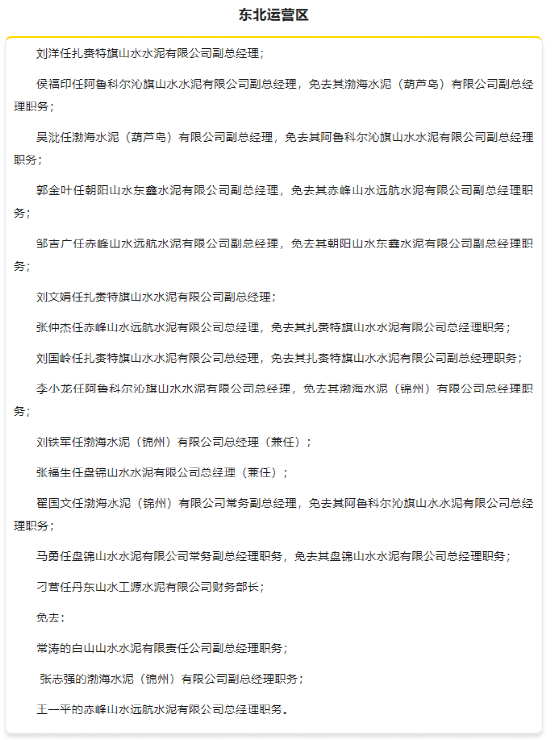 2022年元月海螺水泥原區(qū)域主任改為執(zhí)行總裁,并由總部公司經(jīng)理部管理層領(lǐng)導(dǎo)兼任大區(qū)總裁。