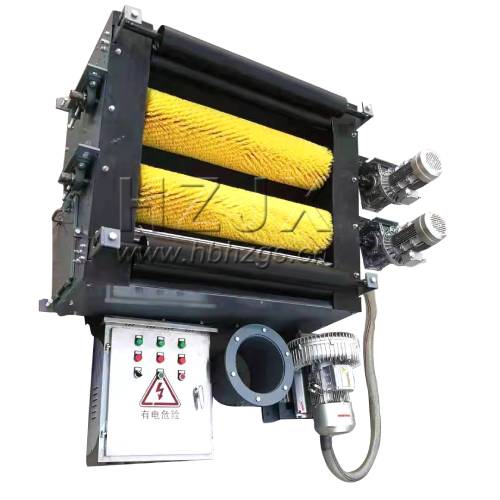 智能負(fù)壓刷料裝置主要由刷輪、傳動(dòng)組件以及風(fēng)刀、微動(dòng)力除塵器、電控箱等組成。