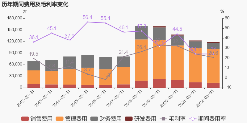 公司2022一季度營業(yè)成本39.5億,同比上升2%,營業(yè)收入同比下降2.5%,毛利率下降3.5%。期間費用率為24%,同去年相比變化不大。經(jīng)營性現(xiàn)金流由4.2億下降至-7億,同比下降267.3%。