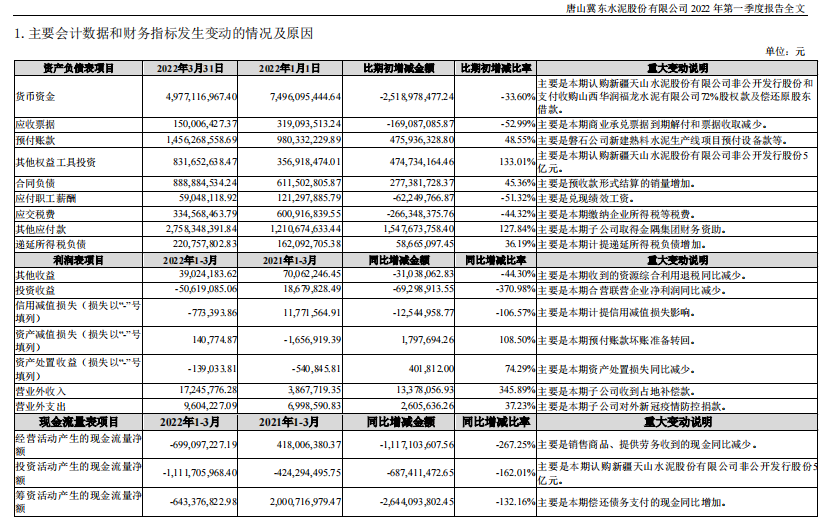 冀東水泥于2022年4月20日披露一季報,公司2022年一季度實現(xiàn)營業(yè)總收入49.7億,同比下降2.5%;實現(xiàn)歸母凈利潤-2.3億,上年同期為-5148.6萬元,虧損幅度擴大。
