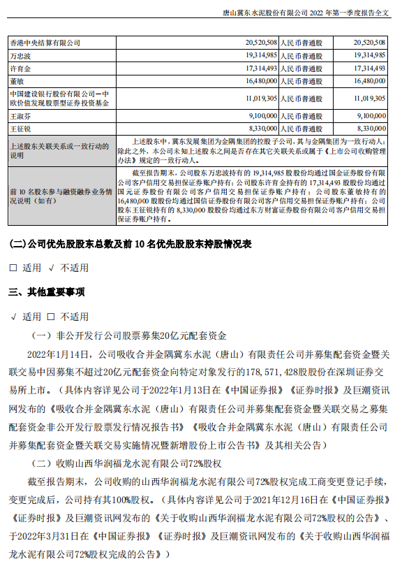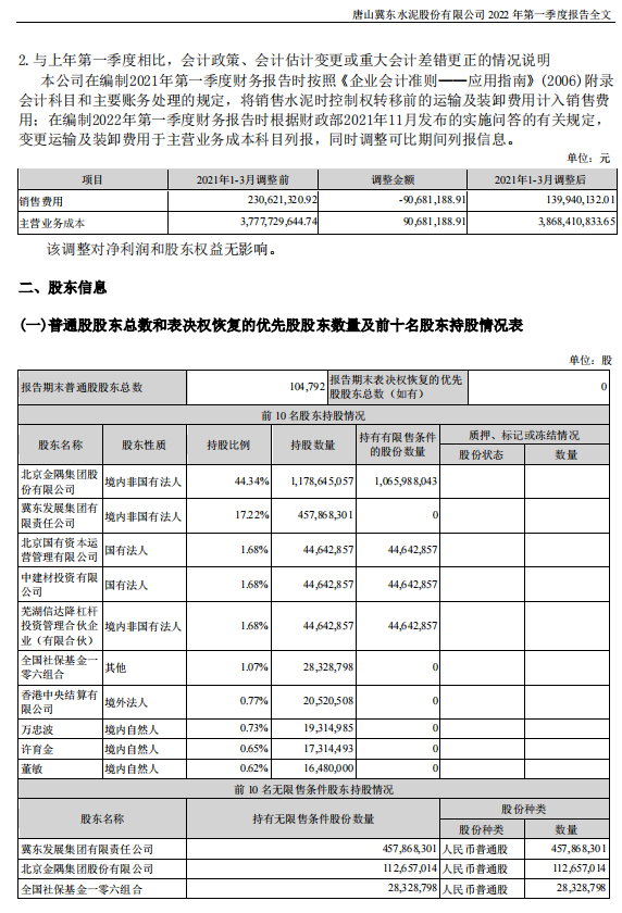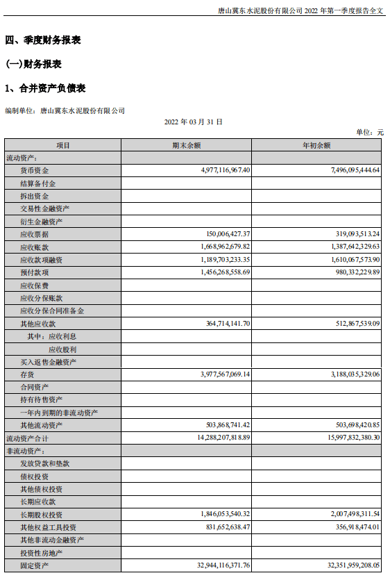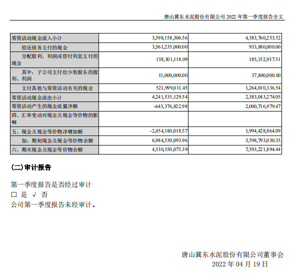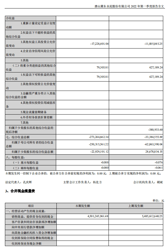 冀東水泥:2022年一季度歸母凈利潤為虧損2.3億元