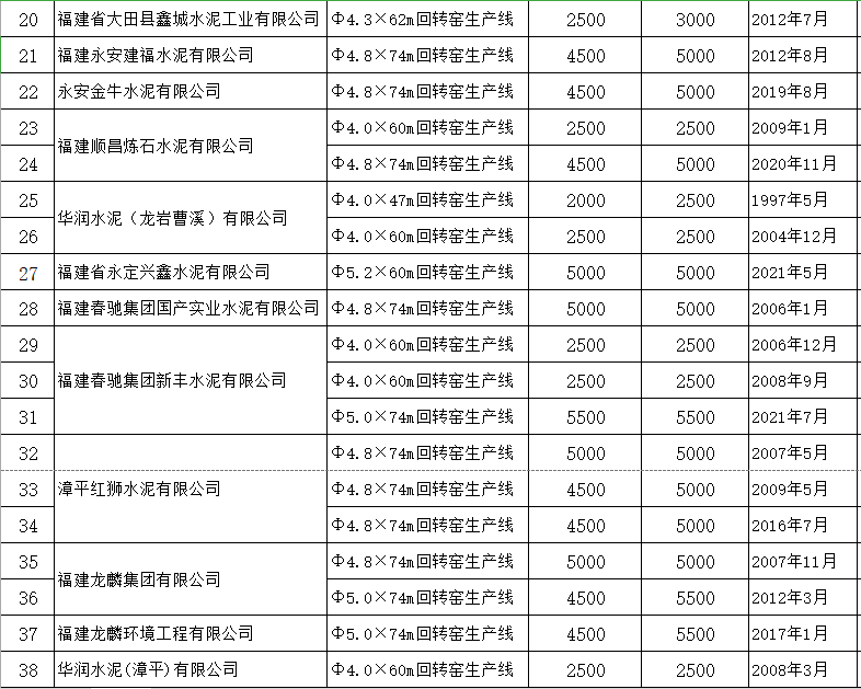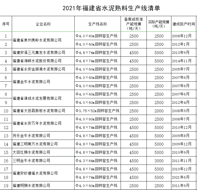 附件:1.2021年福建省水泥熟料生產(chǎn)線清單