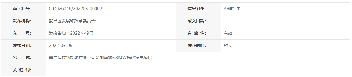 天眼查資料顯示,繁昌海螺新能源有限公司成立于2020年12月,主要經(jīng)營光伏、風(fēng)電及儲能領(lǐng)域的技術(shù)開發(fā)、服務(wù)和項目建設(shè)運營管理等,是安徽海螺新能源有限公司全資子公司。