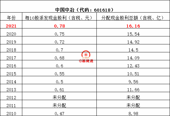 中國中冶擬以總股本20723619170股為基數(shù),按每10股派發(fā)現(xiàn)金紅利人民幣0.78元(含稅),共計現(xiàn)金分紅人民幣16.16億元。該方案擬定的現(xiàn)金分紅總額占2021年度中國中冶合并報表歸屬于上市公司股東凈利潤的19.30%。
