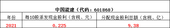 中國能建以總股本41691163636股為基數(shù),向全體股東每10股派發(fā)現(xiàn)金紅利人民幣0.225元(含稅),共計分配現(xiàn)金人民幣9.38億元,剩余利潤結(jié)轉(zhuǎn)下一年度。