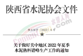4月29日,陜西省水泥協(xié)會(huì)發(fā)布關(guān)于做好關(guān)中地區(qū)2022年夏季水泥熟料錯(cuò)峰生產(chǎn)工作的通知,要求關(guān)中地區(qū)所有水泥熟料生產(chǎn)線于2022年6月1日至7月31日期間錯(cuò)峰停窯30天/線。