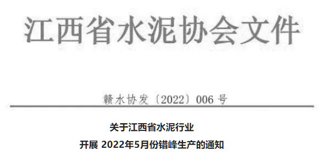 江西省發(fā)布關(guān)于水泥行業(yè)開(kāi)展2022年5月份錯(cuò)峰生產(chǎn)的通知,要求江西省境內(nèi)49條水泥熟料生產(chǎn)線5月10日00:00-5月19日24:00,錯(cuò)峰生產(chǎn)10天。