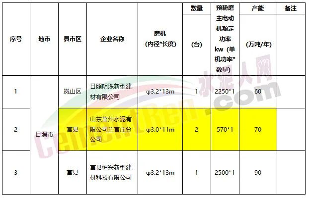來源:山東省發(fā)改委《山東省3.2m及以下水泥粉磨裝置清單(第二批)》