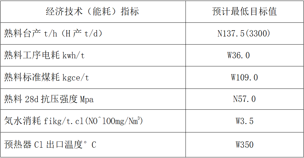 項目二:現(xiàn)公司擬利用2022年雨季集中期(7-10月份左右)對熟料燒成系統(tǒng)進行節(jié)能降耗改造,以及染污物排放深度治理改造。公司期望通過本次技術(shù)改造后,各項經(jīng)濟技術(shù)(能耗)指標(biāo)達到(不得低于)下表要求: