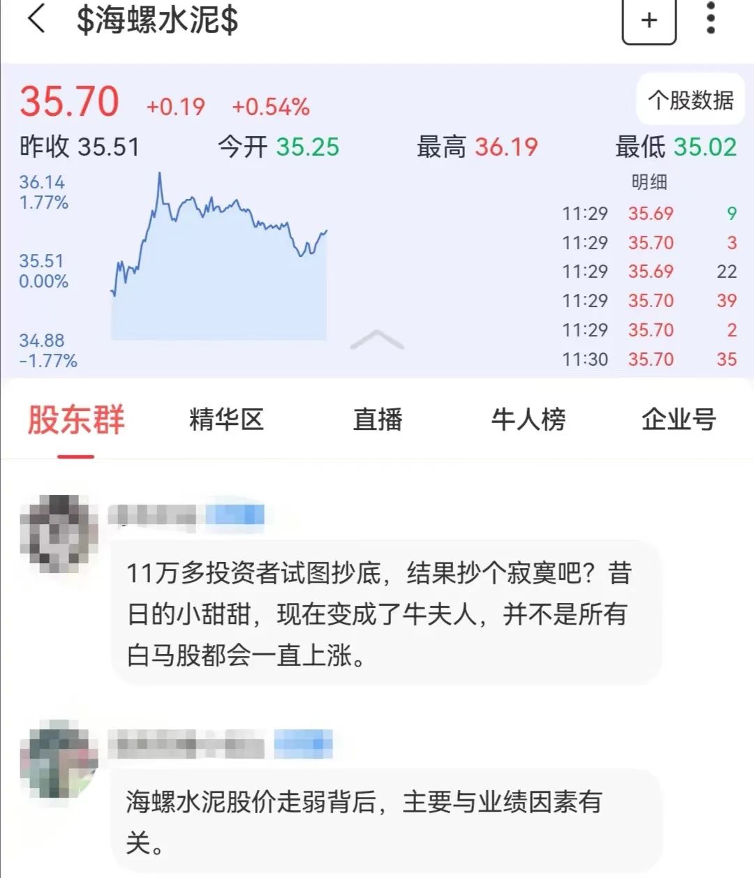還有投資者分析稱,“海螺水泥股價走弱背后,主要與業(yè)績因素有關”。
