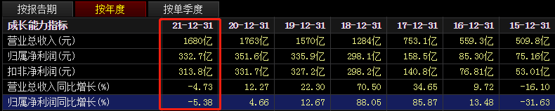 財報顯示,2021年,海螺水泥實現(xiàn)營收1680億元,同比下降4.73%;實現(xiàn)歸屬凈利潤332.7億元,同比下降5.38%,營收、凈利雙雙下降,并創(chuàng)下近6年首次業(yè)績雙降紀錄。