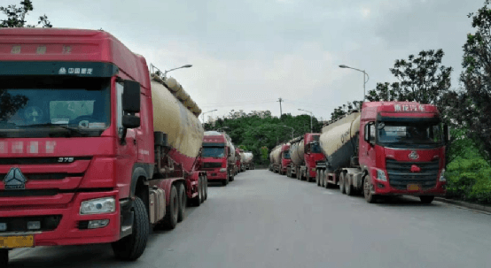 資料圖:水泥車排隊(duì)